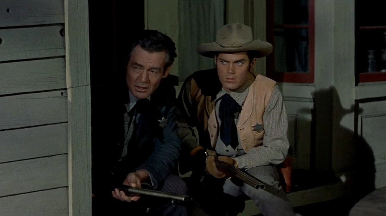 - Robert Ryan plays an aging sheriff responsible for law and order in a frontier cattle town. Virginia Mayo plays his fiancee. As if handling wild cattle drovers isn't enough, a crooked casino operator from Ryan's past comes to town. An early scuffle in the casino leaves Ryan with vision problems that interfere with his duties. Jeffrey Hunter who came to town with a cattle drive encounters Ryan, who killed Hunter's father when Hunter was young. Feelings of animosity soon change as Hunter begins to sense Ryan is telling the truth about his father. What follows is a plot that continues to thicken to the inevitable showdown.