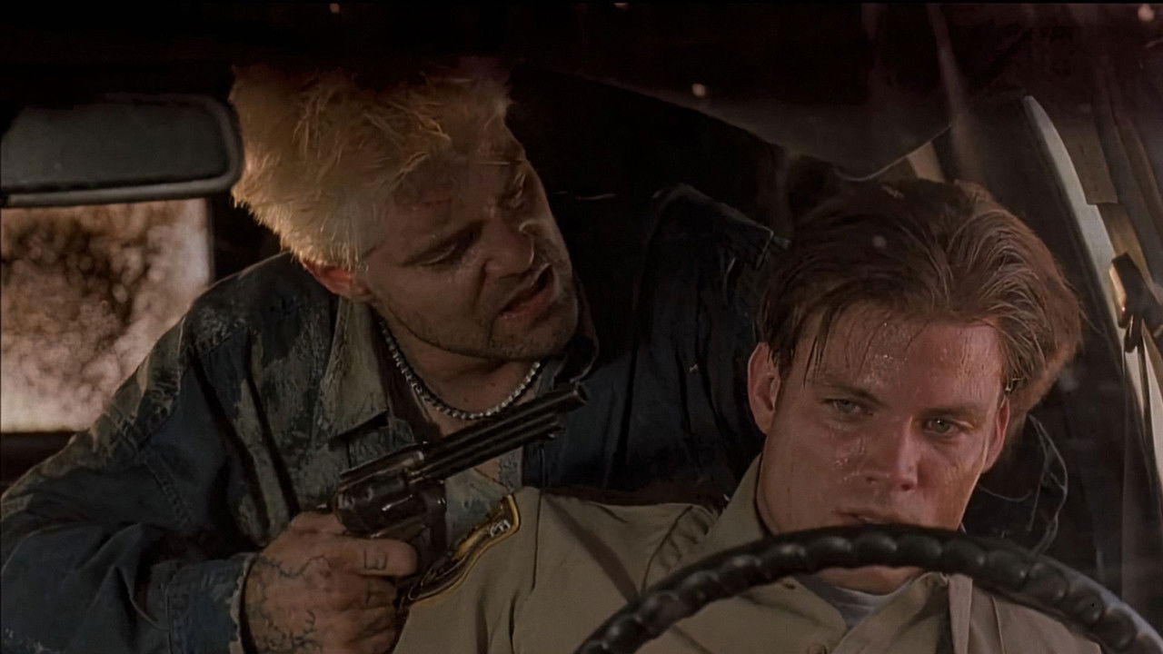 A dumb as rocks security guard in a Texas border town gets involved in a planned bank heist thanks to the charms of two different femmes fatales.