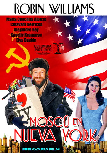 - A Russian circus visits the US. A clown wants to defect, but doesn't have the nerve. His saxophone playing friend however comes to the decision to defect in the middle of Bloomingdales. He is befriended by the black security guard and falls in love with the Italian immigrant from behind the perfume counter. We follow his life as he works his way through the American dream and tries to find work as a musician.