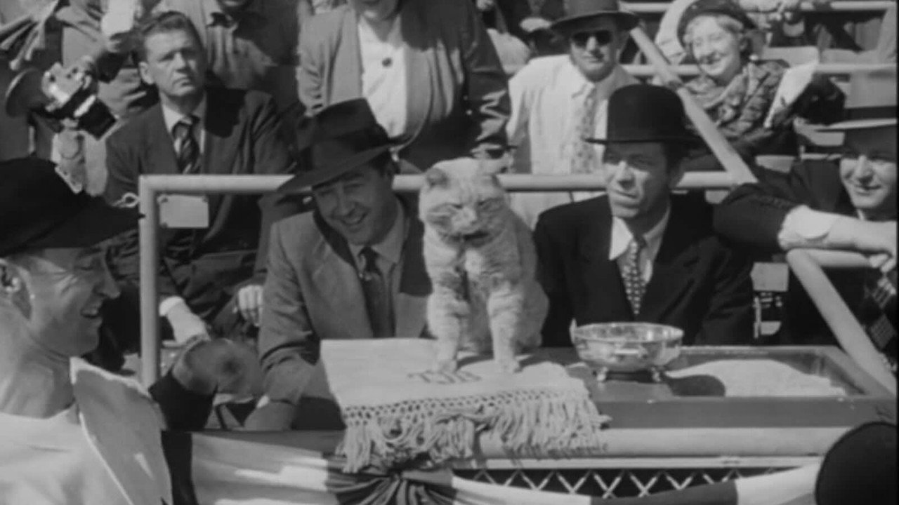 - Rich, eccentric T.J. Banner adopts a feral cat who becomes an affectionate pet he names Rhubarb. Then T.J. dies, leaving to Rhubarb most of his money and a pro baseball team, the Brooklyn Loons. When the team protests, publicist Eric Yeager convinces them Rhubarb is good luck. But Eric's fiancée Polly seems to be allergic to cats, and the team's success may mean new hazards for Rhubarb.