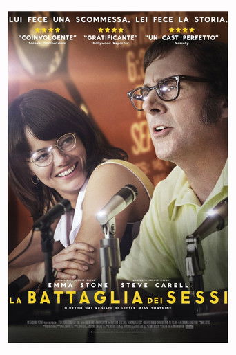 The true story of the 1973 tennis match between world number one Billie Jean King and ex-champ and serial hustler Bobby Riggs.