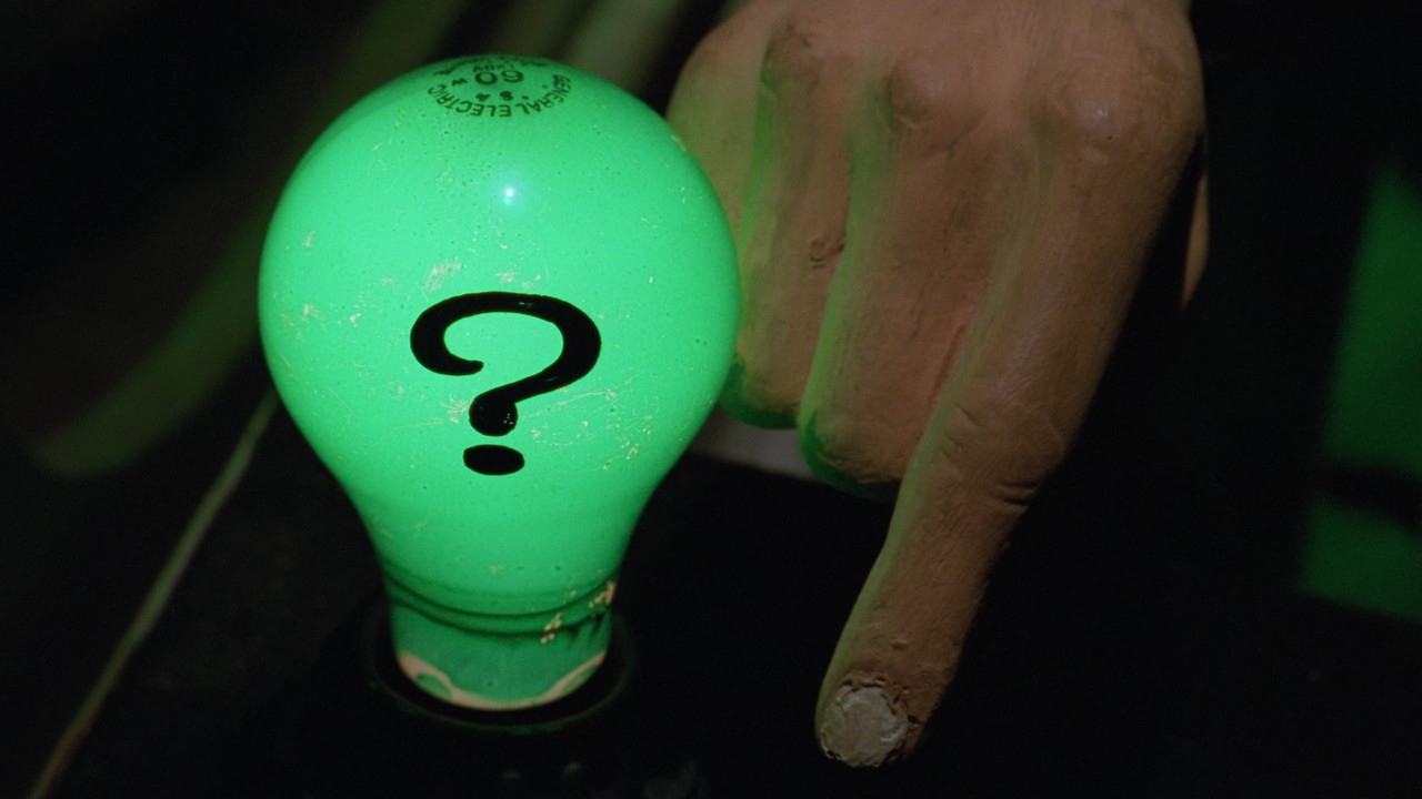 - Batman faces off against two foes: the schizophrenic, horribly scarred former District Attorney Harvey Dent, aka Two-Face, and the Riddler, a disgruntled ex-Wayne Enterprises inventor seeking revenge against his former employer by unleashing his brain-sucking weapon on Gotham City's residents. As the caped crusader also copes with tortured memories of his parents' murder, he has a new romance, with psychologist Chase Meridian.