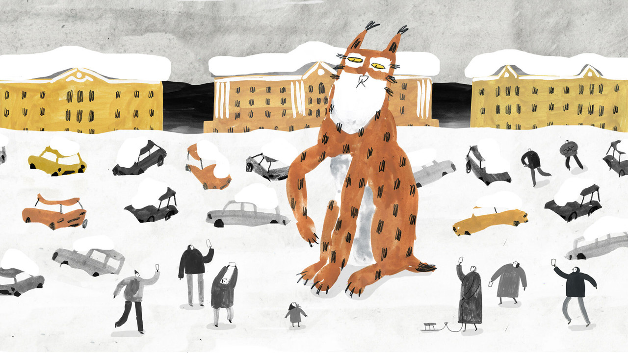 - A curious lynx leaves its forest, attracted by the lights of the nearby town. It has great fun there until it falls asleep in the middle of a parking lot. In the early morning, locals are astonished to find this strange animal covered in snow.