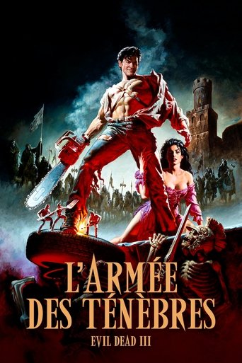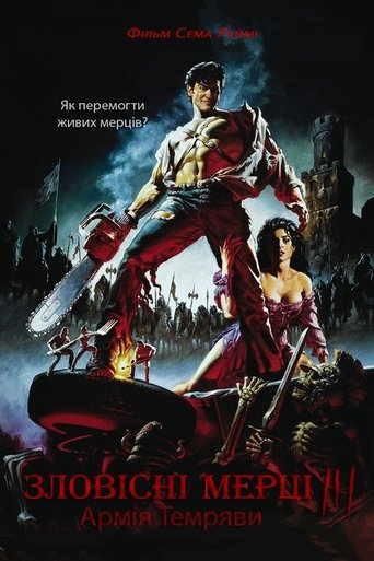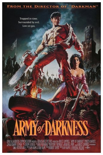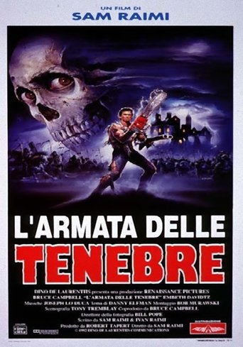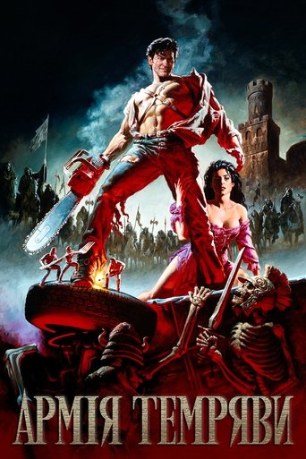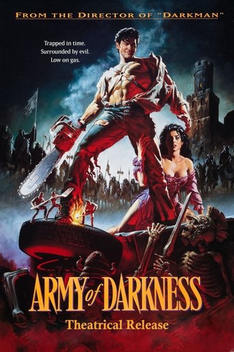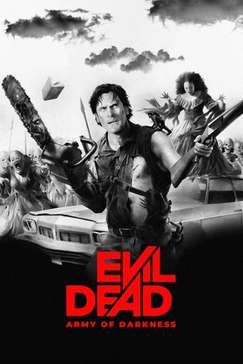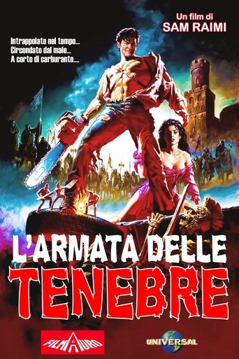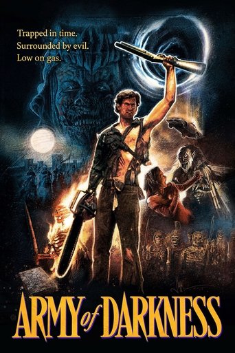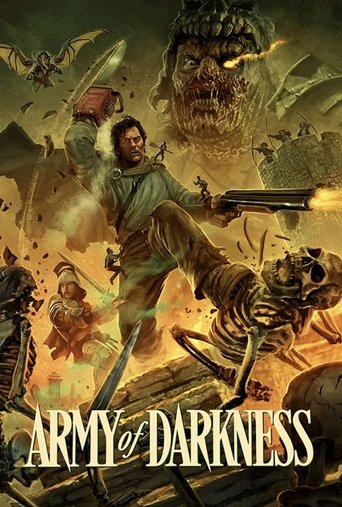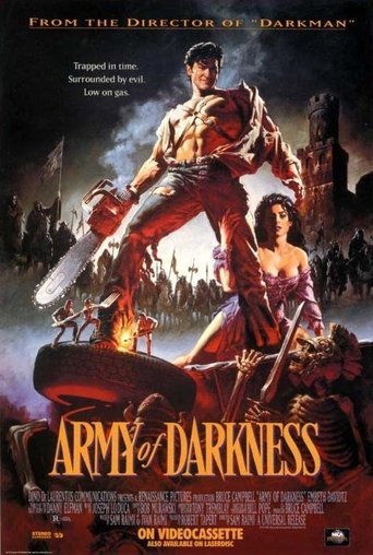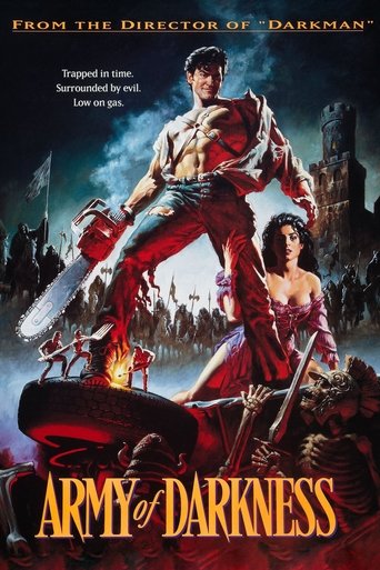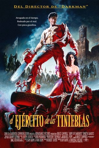 Ash, a handsome, shotgun-toting, chainsaw-armed department store clerk, is time warped backwards into England's Dark Ages, where he romances a beauty and faces legions of the undead.