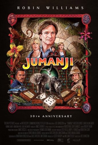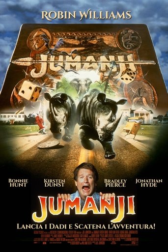 - When siblings Judy and Peter discover an enchanted board game that opens the door to a magical world, they unwittingly invite Alan -- an adult who's been trapped inside the game for 26 years -- into their living room. Alan's only hope for freedom is to finish the game, which proves risky as all three find themselves running from giant rhinoceroses, evil monkeys and other terrifying creatures.