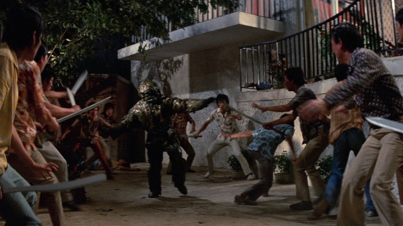 A cripple takes revenge on criminals by using a magic spell that transforms him into an oily monster/superhero.